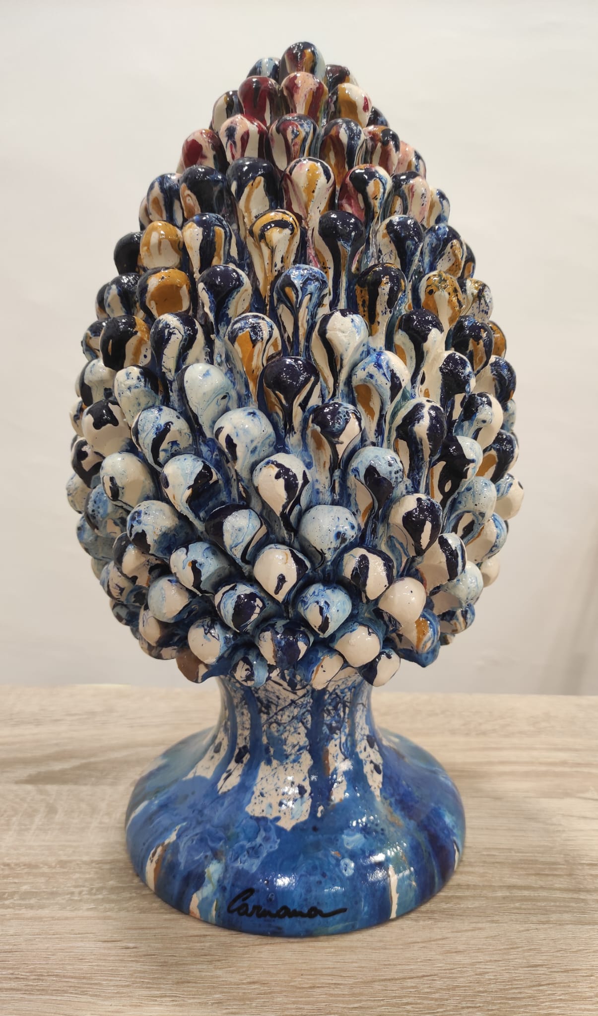 Pigna Colata in Ceramica Siciliana Artigianale – 33 cm – Multicolor sull’Azzurro