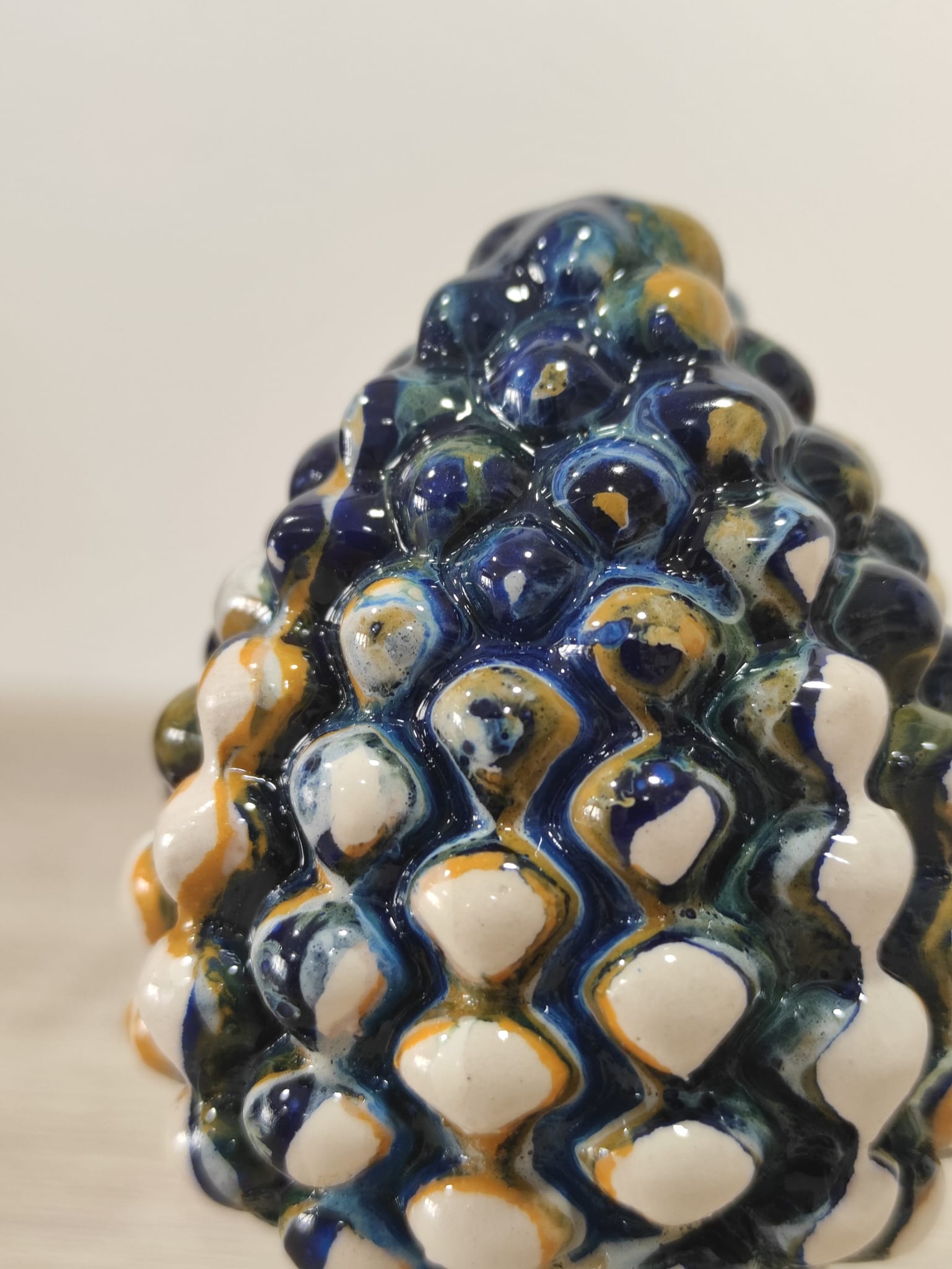 Pigna in Ceramica Siciliana Artigianale – Pittura a Freddo – 8 cm – Blu Bianco e Giallo – Pezzo Unico e Originale