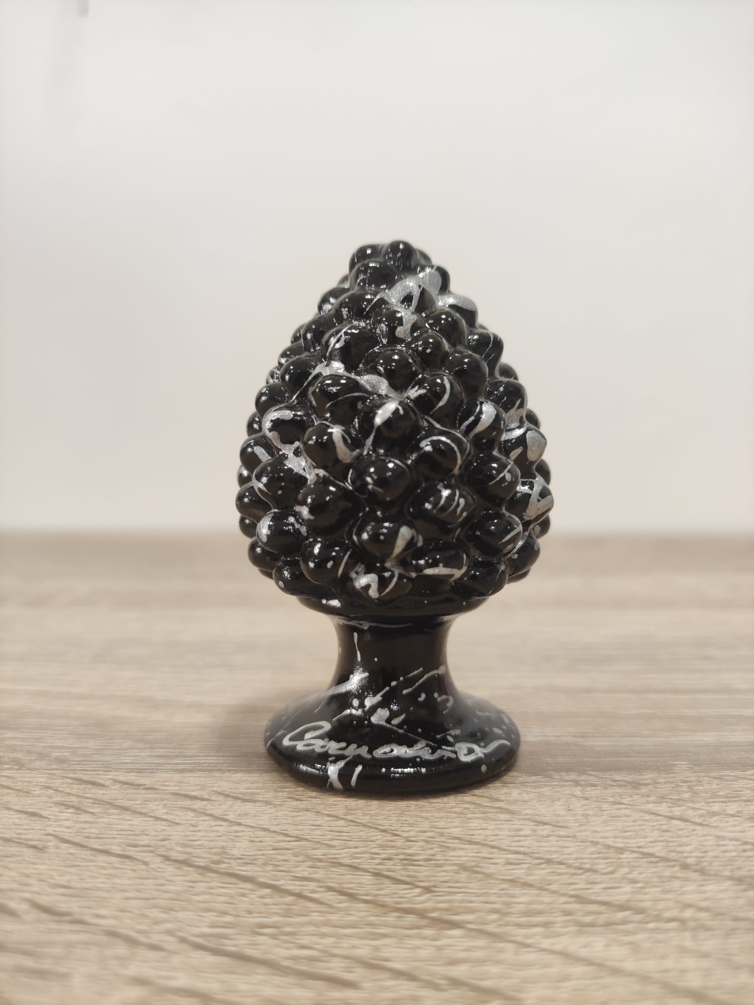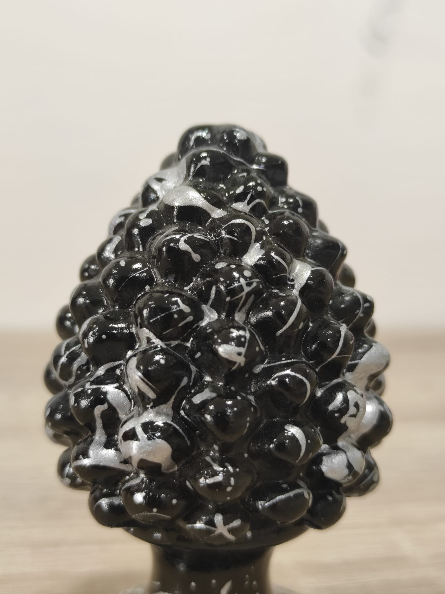 Pigna in Ceramica Siciliana Artigianale – 8 cm – Nero e Argento