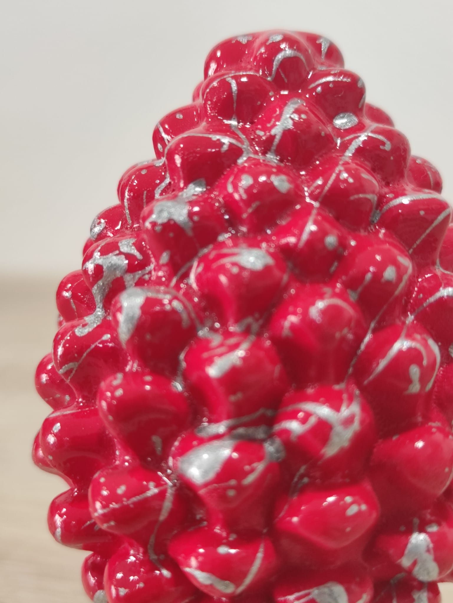 Pigna in Ceramica Siciliana Artigianale – 8 cm – Rosso e Argento