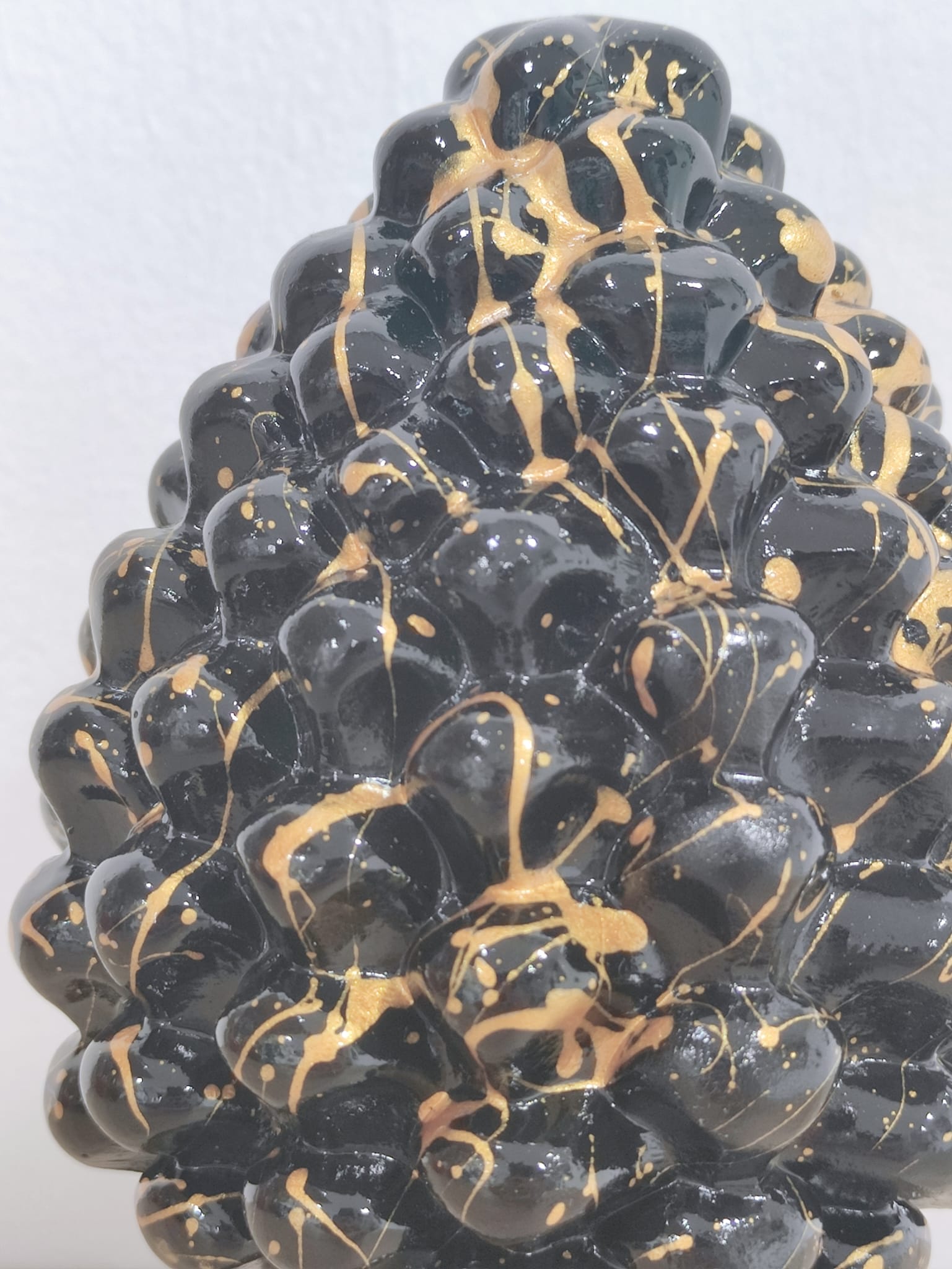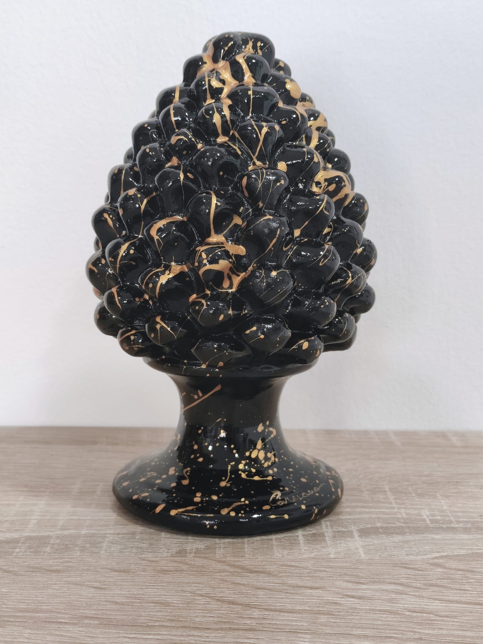 Pigna Schizzata in Ceramica Siciliana Artigianale – 16 cm – Nero e Oro